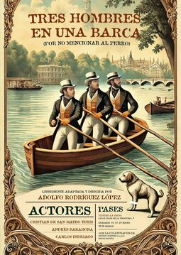 Libremente inspirada en el libro de culto británico escrito en 1889 por Jerome K. Jerome, la obra presenta, en tono de comedia, las peripecias de tres burgueses urbanitas que deciden abandonar las comodidades de su vida para recorrer el Támesis en barca. En su aventura se verán sometidos por los imprevistos y las vicisitudes de una naturaleza que les resulta ajena. Acompañados por Montgomery, su inseparable perro, su incapacidad para entender la vida fuera de un entorno acomodado, los llevará a enfrentarse a situaciones de lo más hilarantes, que se entremezclaran con reflexiones personales y momentos de introspección, siempre barnizados por el corrosivo y universal sentido del humor anglosajón.